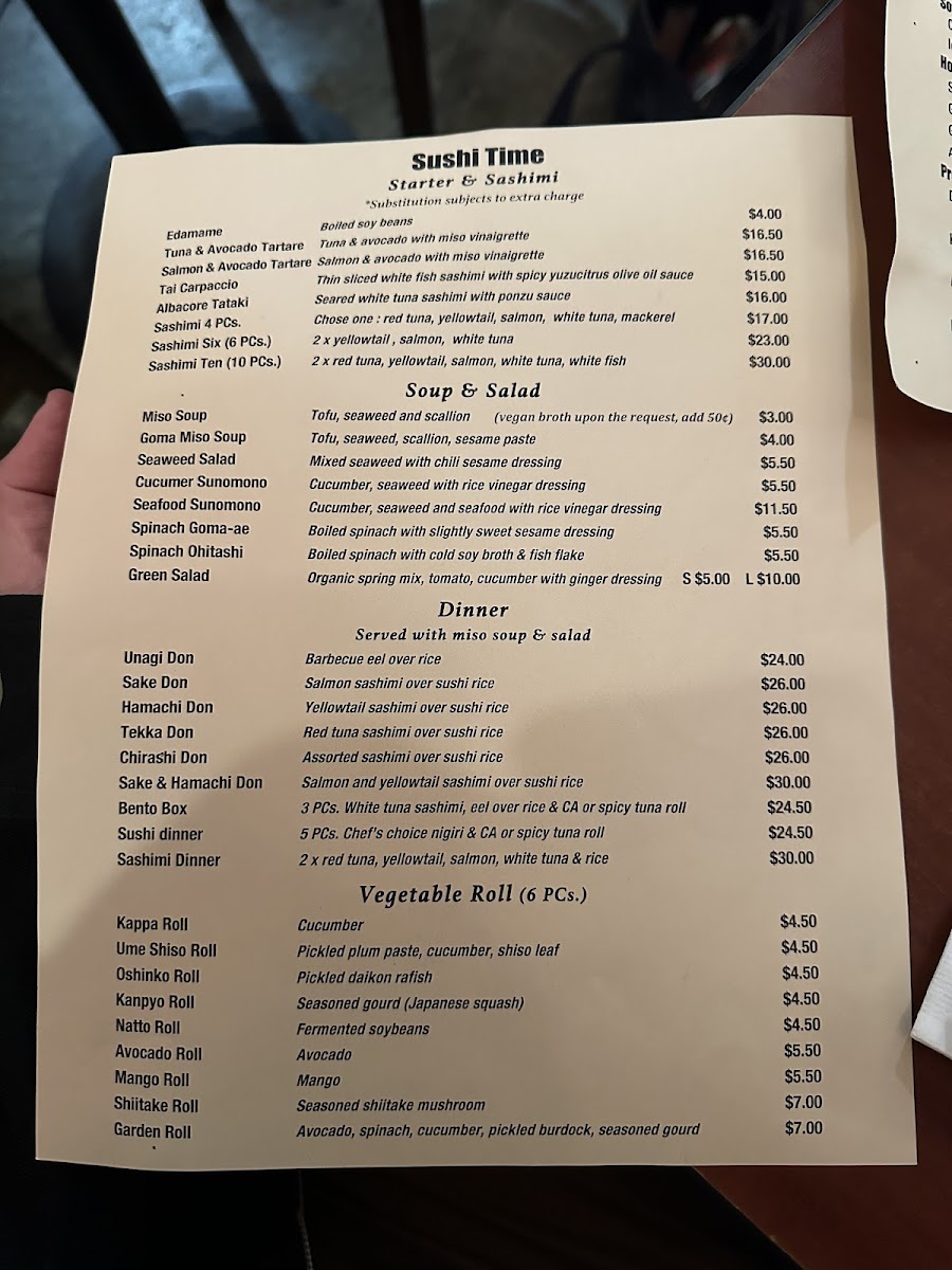 Sushi Time - CA 94114 Menu